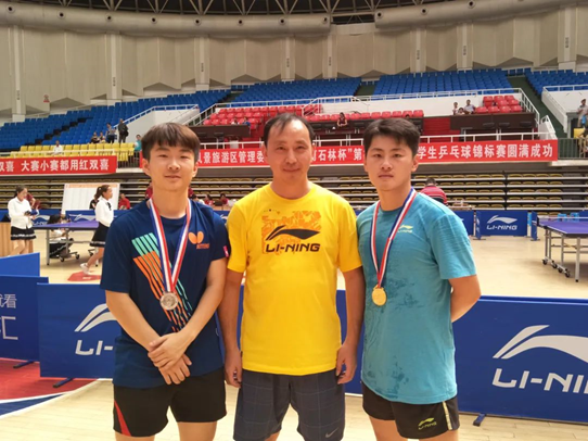▲曾伟(中)带队参加第21届全国大学生锦标赛,郑培锋(右一)。