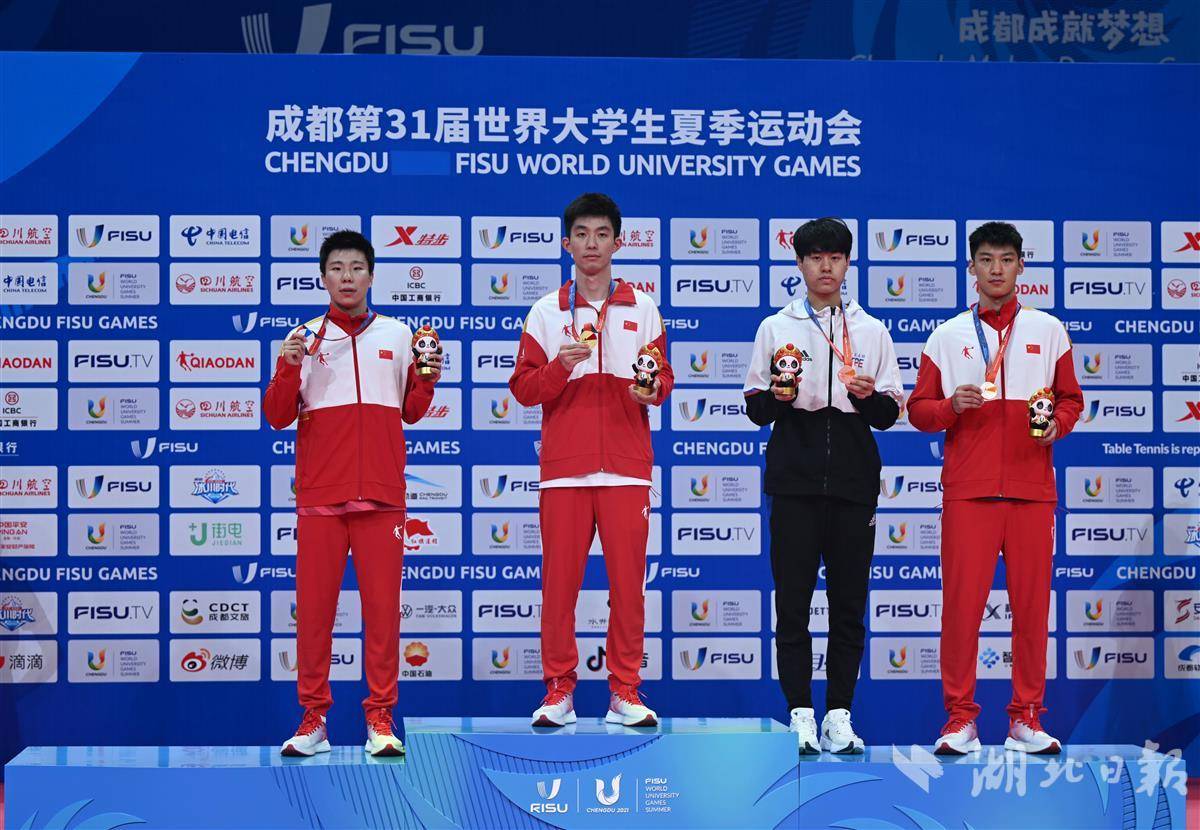 此前,8月1日晚,周恺与队友薛飞、徐瑛彬一起在决赛中以3:0战胜中国台北队,夺得此次大运会乒乓球男子团体冠军。
