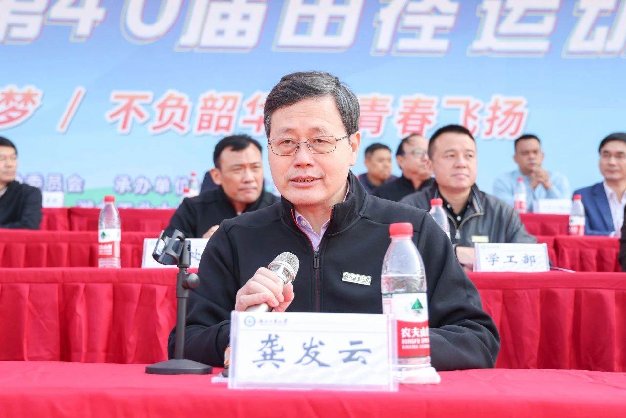 他指出,培育出一流的体育教育和一流的体育文化,事关人才全面发展。体育教育业已成为推进学校育人生态环境建设工程,是学校全面落实“五育并举”、以体育人,培养“德、智、体、美、劳”全面发展人才培养体系的关键一环。全校师生要把本届运动会焕发出来的顽强拼搏、团结协作精神,融入到工作学习中去,以更加强健的体魄、更加昂扬的精神为奋力建成高水平工业大学、为学校高质量发展做出新的、更大的贡献!