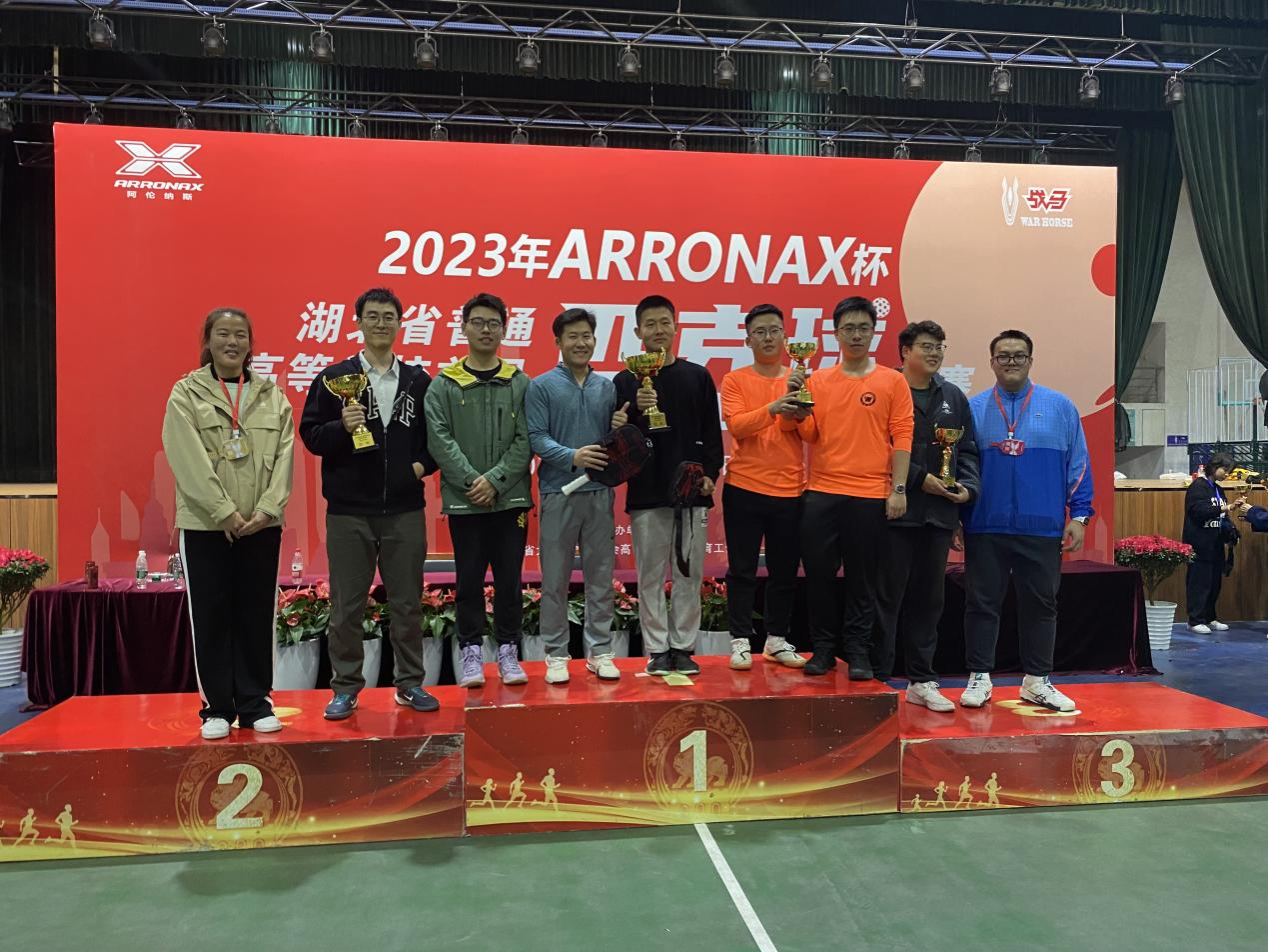 2023年12月9日至10日,由湖北省大学生体育协会主办,武汉城市学院承办的湖北省首届大学生匹克球比赛在武汉城市学院东湖校区体育馆隆重举行。比赛分为双人组、男女混合组和教职组,共有来自湖北省17所高校的140余名运动员参加了本次比赛,经过一天的激战,我校匹克球队斩获男双组冠军,同时还获得女双八强。