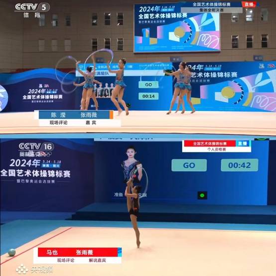 2024年5月14日至18日,我校体育学院青年教师张雨薇应中央广播电视总台邀请,担任2024年全国艺术体操锦标赛暨巴黎奥运会选拔赛央视转播现场解说嘉宾。本次比赛在陕西省铜川市举行,共有来自国家艺术体操专业代表队、全国各个省市专业队等18支队伍共253名运动员参赛,比赛全程由中央广播电视总台体育频道CCTV5、奥林匹克频道CCTV16进行电视端直播,央视频APP、中国体操协会官方微博同步进行移动端直播。
