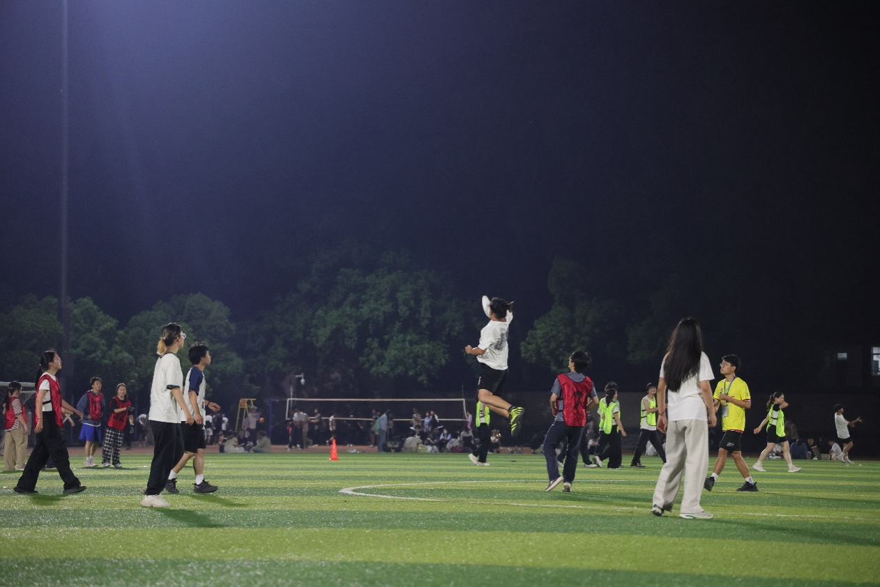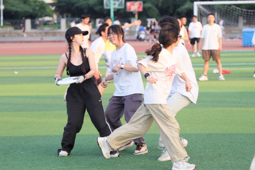 在比赛期间,各个队伍全力以赴,充分践行了飞盘精神,享受比赛过程,由来自湖工大光冕飞盘社的同学担任裁判,公正裁决,确保比赛的顺利进行。在绿茵场上,只见一人用飞盘抛出一条优美弧线,然后便展开了激烈的追逐、扑抓、躲避……选手们在场上奔跑、跳跃,每一次精准的传接都让人心跳加速,每一次成功的得分都引发观众的欢呼和掌声。