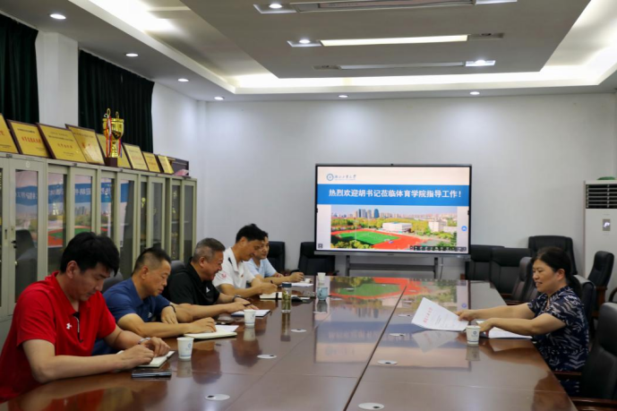在听取学院相关情况的汇报后,胡晓艳肯定了近年来体育学院“以体育人”在促进全体学生身心全面发展方面发挥的重要作用,在人才培养方面取得的成绩,以及在竞技比赛中为学校赢得的社会声誉。