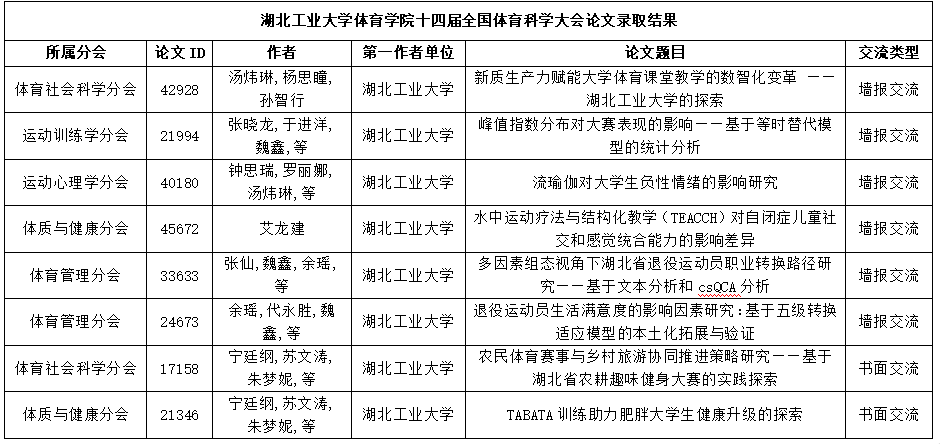 喜报!湖北工业大学体育学院在第十四届全国体育科学大会论文评审中斩获佳绩