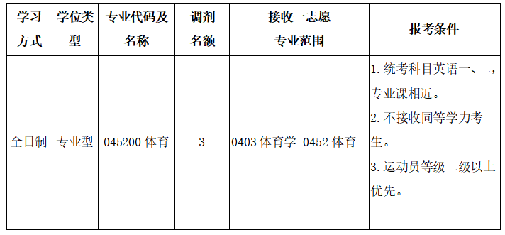 我院体育专业尚有招生余额,拟接收调剂考生:
